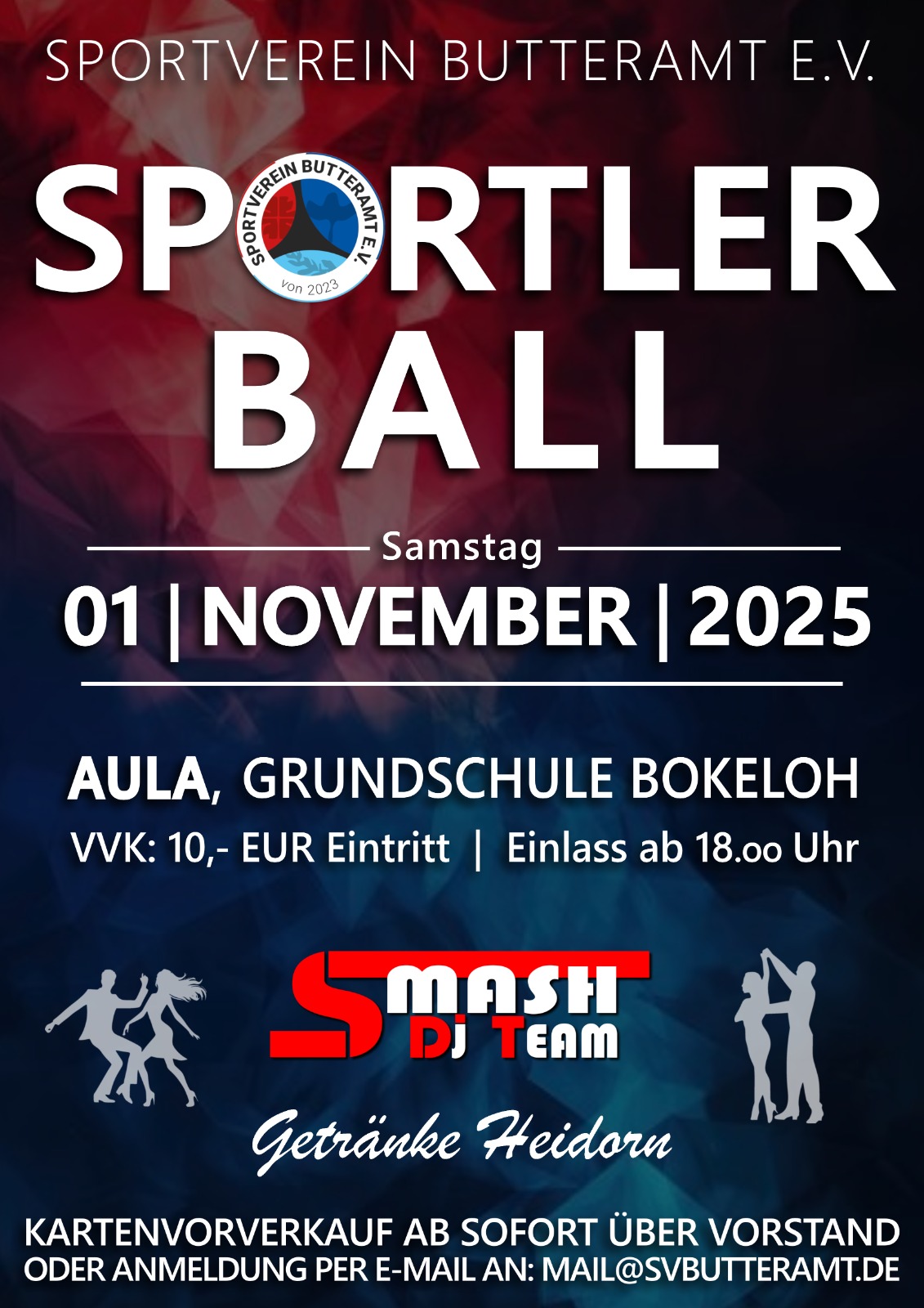 Der Sportverein Butteramt lädt alle Mitglieder und Mitgliederinnen herzlich zum ersten SVB Sportlerball ein!