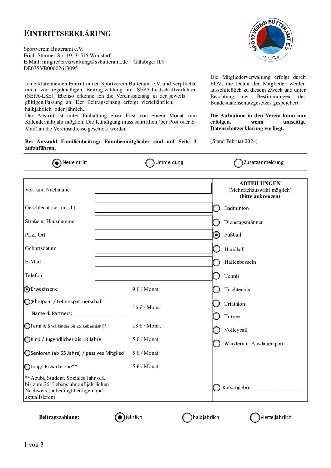 Mitgliedschaftsantrag, Übungsleiterabrechnung, Ausgabenbelege und mehr.